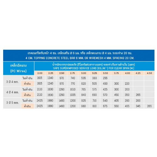 - แผ่นพื้นกลวงซีแพค Hollow Core ออกแบบเพื่อเป็นชิ้นส่วนสำหรับงานโครงสร้างพื้นคอนกรีตเท่านั้น กรณีใช้เป็นโครงสร้างอื่น โปรดปรึกษาวิศวกรออกแบบก่อนใช้งาน